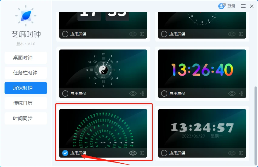 5、如何让你的电脑实现这个罗盘时钟的效果呢?操作其实很简单,只需要点击“应用屏保”就可以了