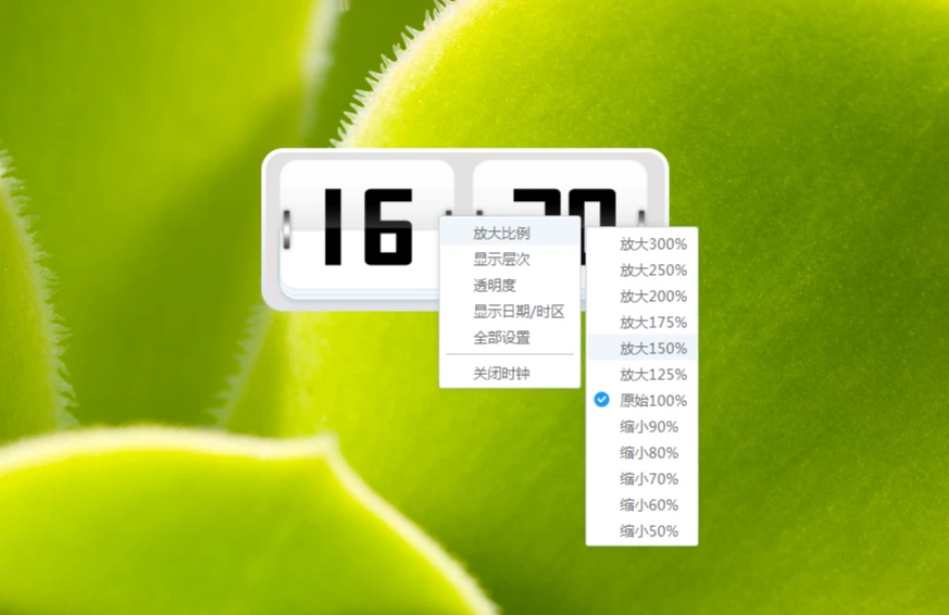 另外还是可以设置桌面时钟的透明度和尺寸,根据每个人的桌面,设置透明度,让时钟融合到桌面壁纸;