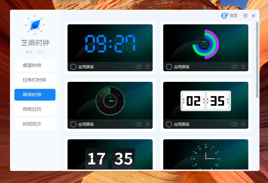 二、《芝麻时钟》设置屏保非常简单,多种美观实用的屏保主题可供你选择,点击应用屏保即可,动态的《芝麻时钟》屏保,让你的电脑更美观。