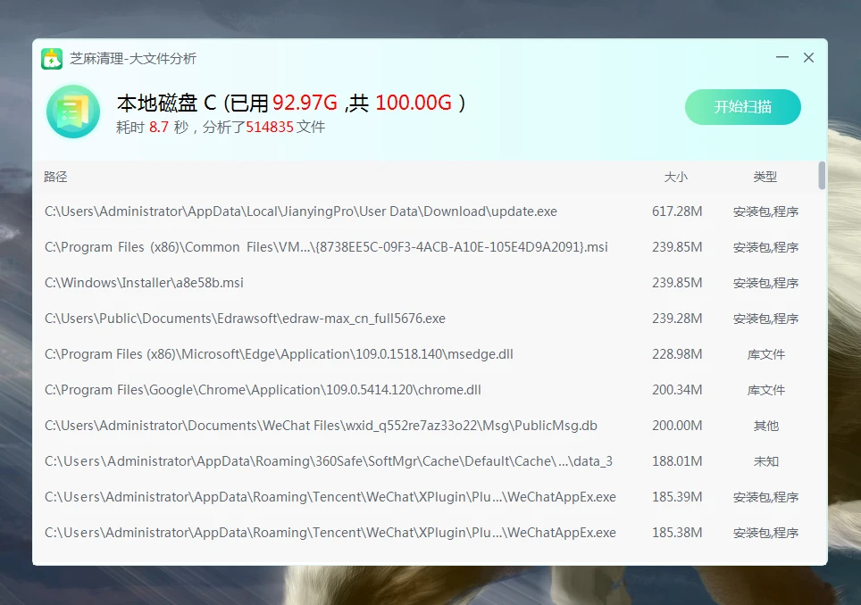 第二步:芝麻清理的C盘瘦身功能,给C盘来一个彻底且干净的清理;